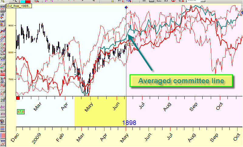 When you display the committee, the program shows averaged committee line. This line is marked here by teal color: