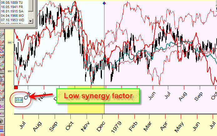 Look at this chart; all four lines here move differently, the synergy factor here is low (23.8).