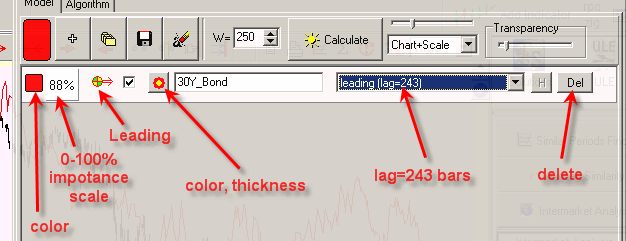 I recommend to vary these parameters; the program automatically refreshes Intermarket diagram in the Main Screen.
