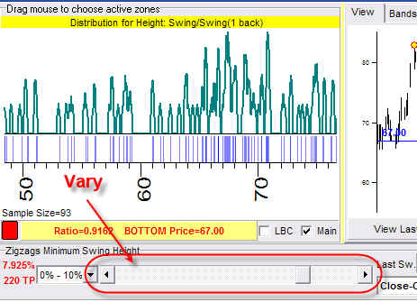 The program automatically recalculates statistical criteria and updates the Main screen. Thus you can observe all possible support levels very quickly, though always watch the last turning point, whether it is a top or a bottom.