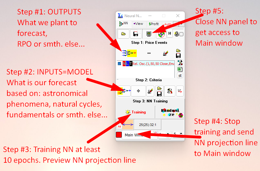 the program stops Neural Network training when the correlation reaches 15% OR the amount of training epochs reaches 10.