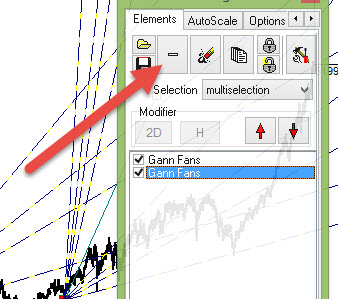Clicking "-' button, you can delete a highlighted charting tool: