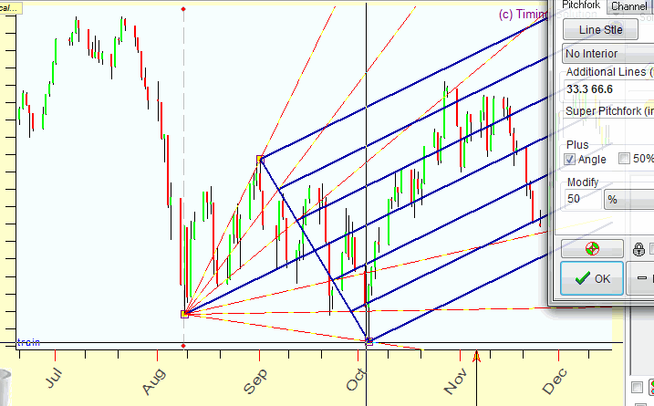 Changing the anchor's position is only one of the possible modifications. Practically all charting tools in Timing Solution have many variations. As an example, have a look at the classical Andrews pitchfork:
