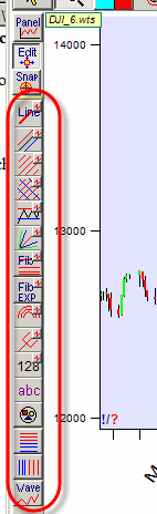 All buttons related to the charting tools are located on the left side of the Main window. First three buttons work with already created charting tool. Then a set of buttons follows, each one is dedicated to a specific charting tool.