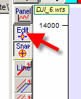 The second button, "Edit", is used to modify the anchor position of the charting tool (it is activated by default):