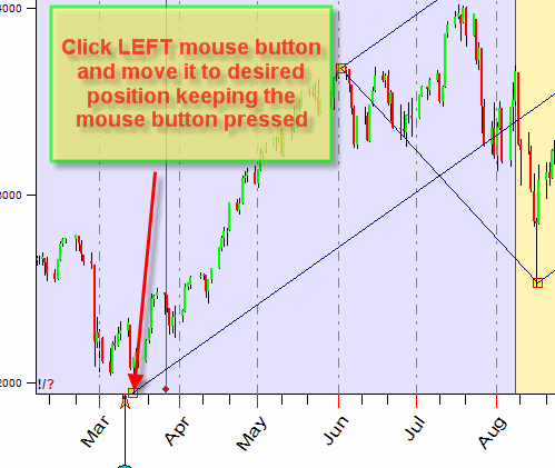 After the charting tool is applied, you may decide that it does not help you much in your situation. Maybe, the anchors were not set at the best position. If it is the case, you can easily modify the initial position of any anchor. Remember that "Edit" button is activated by default. You need to just press LEFT mouse button at the anchor that you would like to be re-positioned and drag the mouse cursor to a new location of that anchor (while holding the left mouse button):
