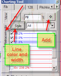 To modify any charting tool, RIGHT click on the anchor (small yellow box). You will then get the dialog box to customize your charting tool: