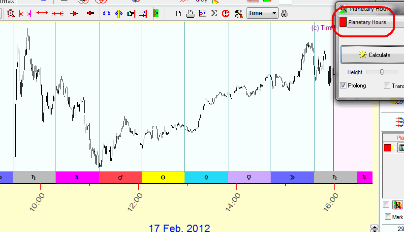 Many users use Planetary Lines module. This module is developed to reveal the support / resistance levels using planetary positions. Though all calculations are done correctly here, we must warn you regarding this module, as we have not find yet any formal way to verify it. However, it is a very popular module among TS users.