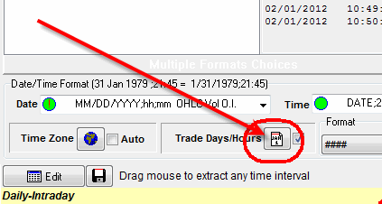 In most cases the program automatically specifies the trading hours that are used for downloaded price history. You can also set these hours manually clicking this button: