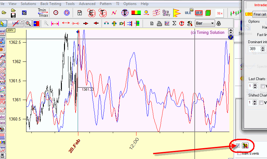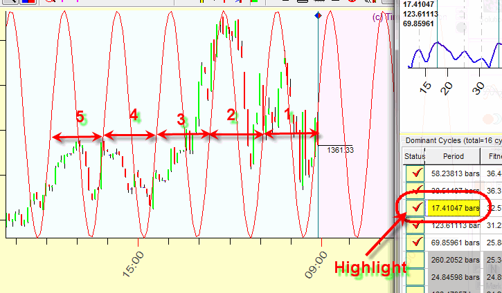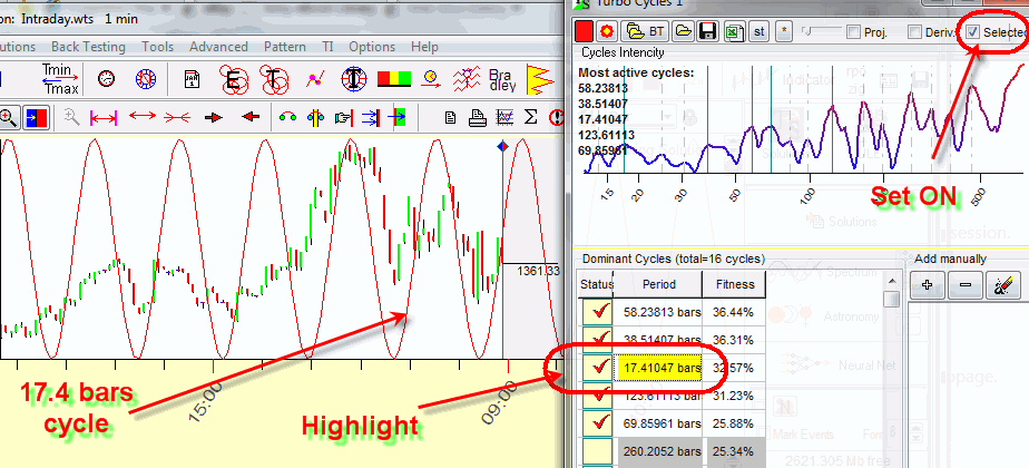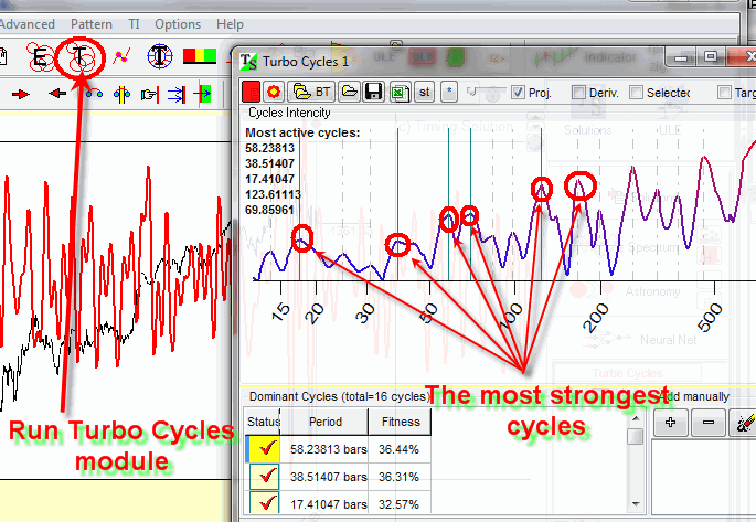 We recommend to verify all calculated cycles in respect to the cyclical mode of the market. In order to do that, highlight these cycles one by one and view them in the Main screen: