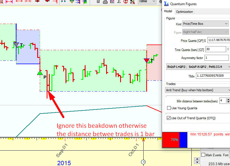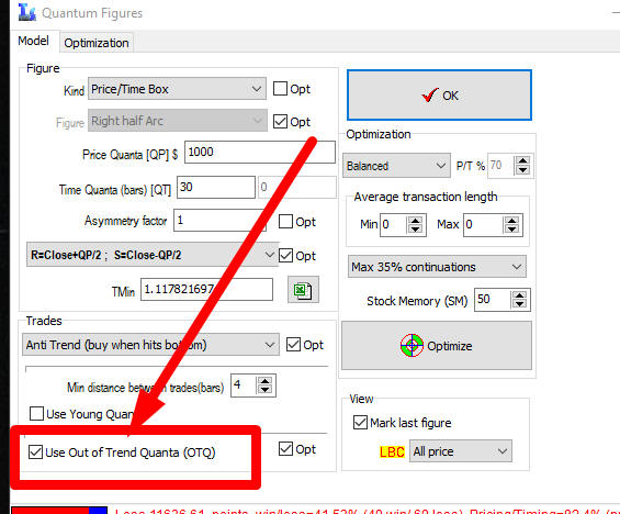 We call these quantum figures Out of Trend Quanta (OTQ). The trading signals generated by OTQ are marked by grey color: