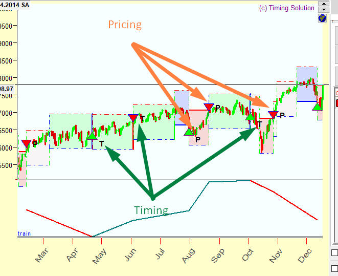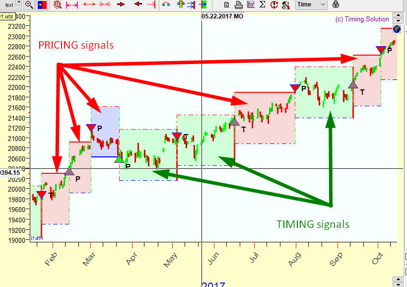 It helps you easily see where pricing or timing works. Also for your convenience, there is a bar that shows the balance between trade signals derived from pricing and timing:
