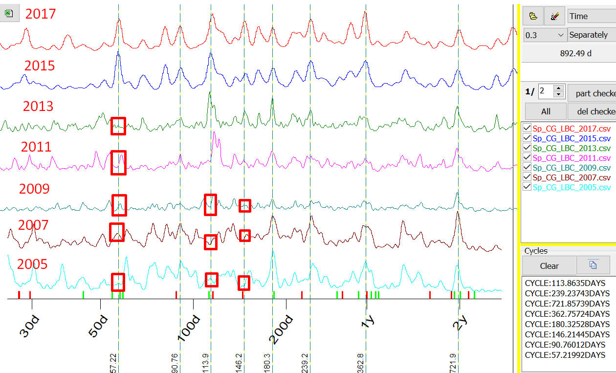 By request, we provide detailed data that is used to calculate high probability cycles. All these calculations have been done with Spectrum Viewer program.