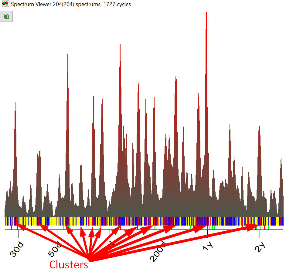 Going further: I have downloaded Q-Spectrums for 204 stocks, now program analyses 1727 different cycles, you can see clusters now: