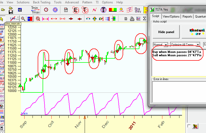 What I would like to say? It is possible to use astro phenomena and create a trading system based on them. With T17 module (which does a testing of strategies), you are able to fine-tune the signals generated by that system.