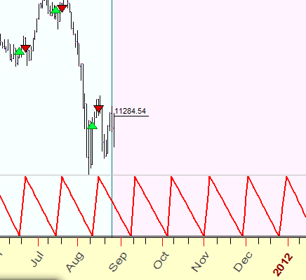 This system should be used together with some other techniques, like turbo cycles model. I recommend to use this model as a regular indicator, we call it "Astro zigzag" indicator. This is how it looks:
