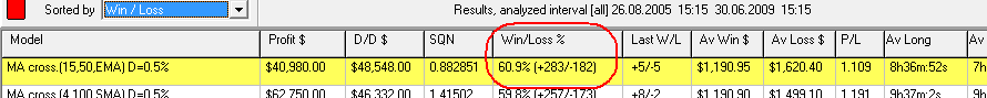 Moreover we cannot consider a strategy with the highest profit as the best one. The profit can be done with several good trades when price has changed sharply while losing money all the time - still within that same system. Not many people can feel themselves comfortable with it.