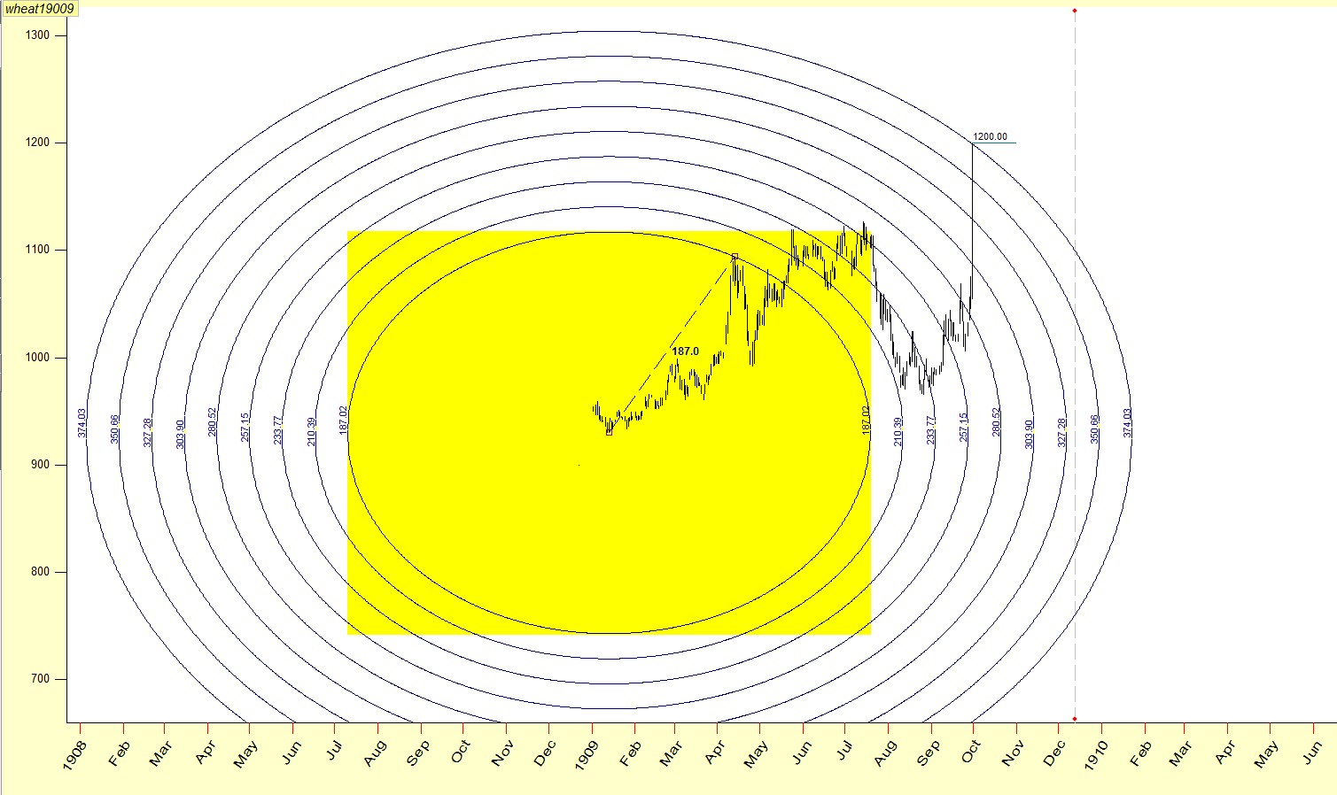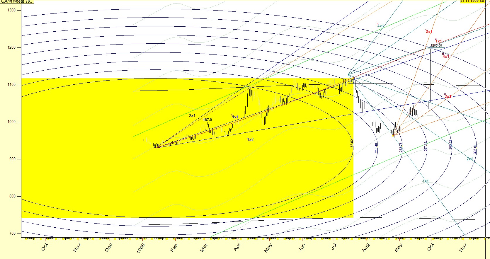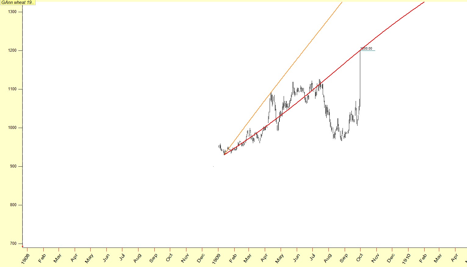 He said, that if by the end of the trading day of September 29th 1909,Wheat September would not reach 1.20 $ ,then it would prove that there was something wrong with his method.