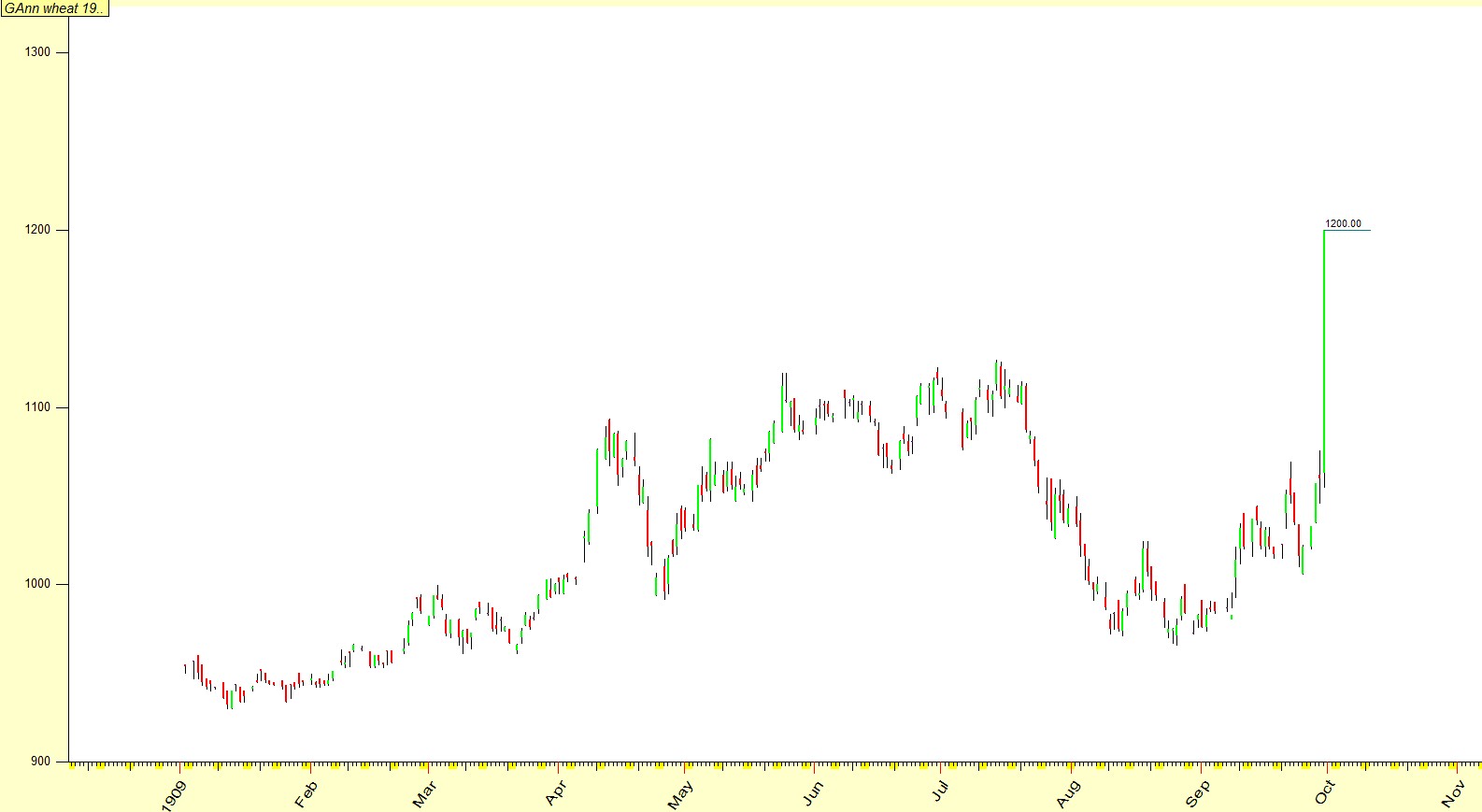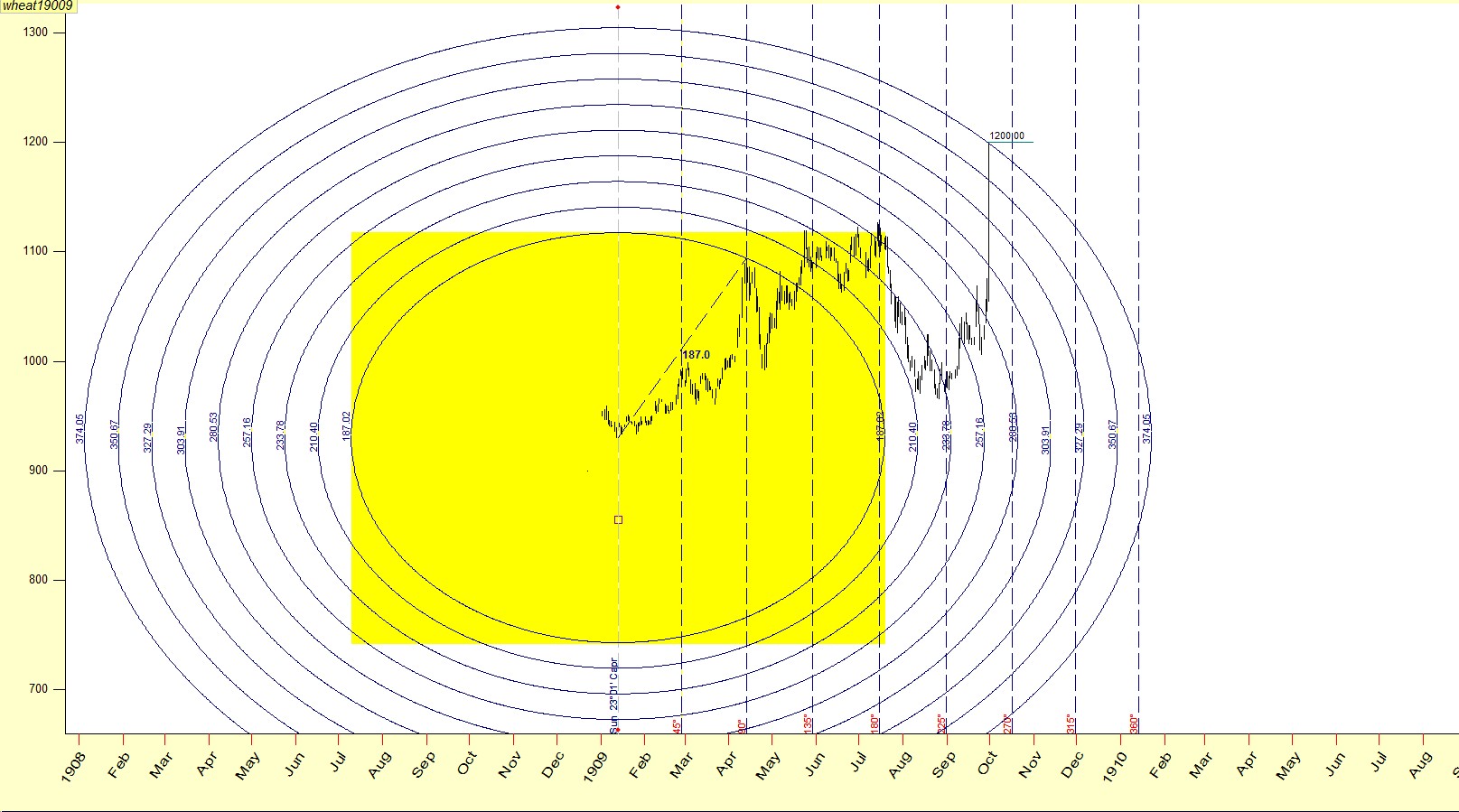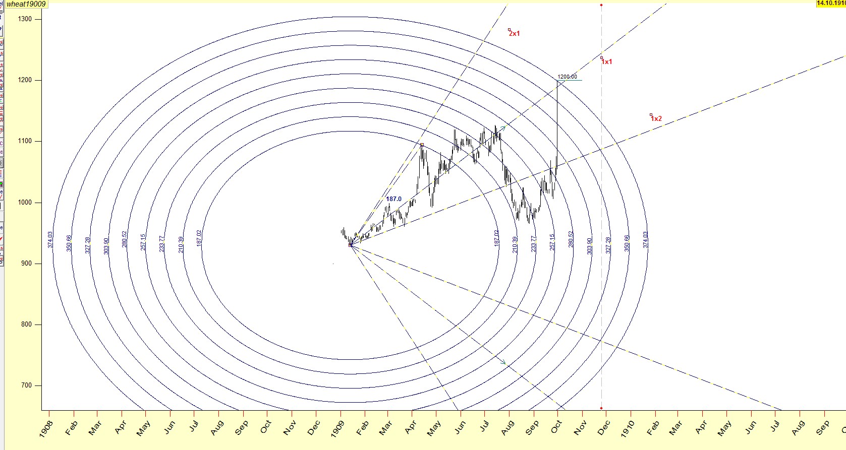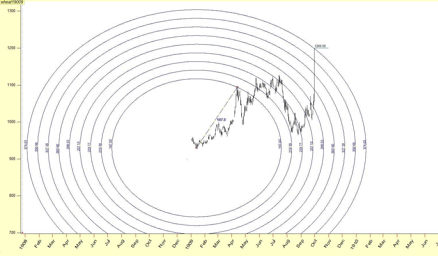 He said, that if by the end of the trading day of September 29th 1909,Wheat September would not reach 1.20 $ ,then it would prove that there was something wrong with his method.