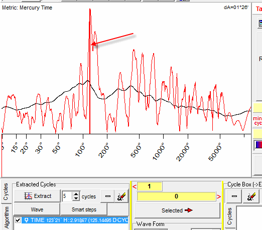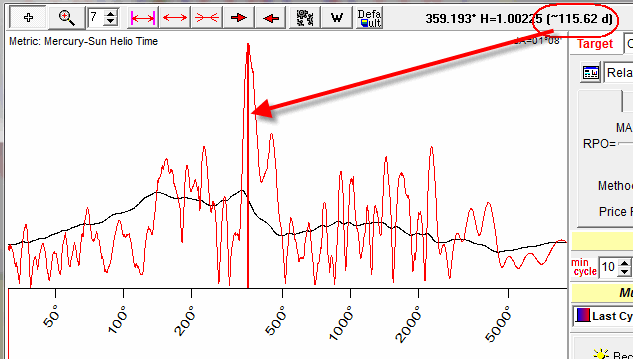 The next cycle to be researched is 359 degrees Mercury phase cycle; it has the period of 115 days: