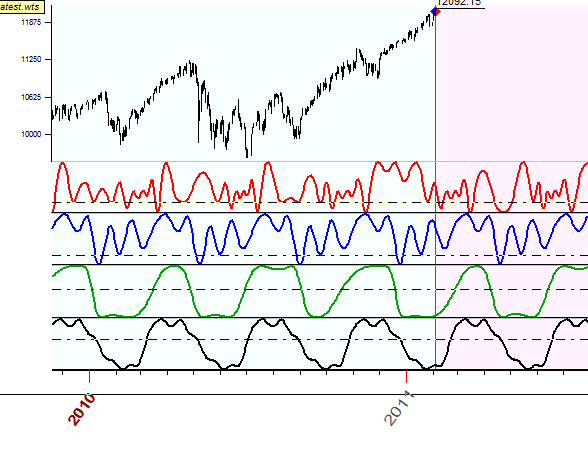 As you see, these cycles point at different situations on the stock market: