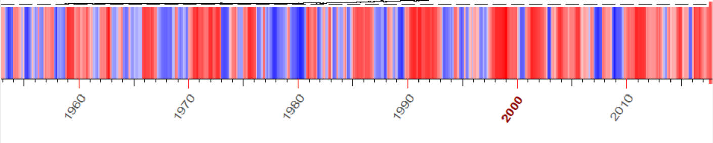 The red regions there show the periods when Annual cycle was strong, while blue regions are periods when Annual cycle was weak. As you see, Annual cycle was strong since 1997 up to 2002 (S&P 500 index was analyzed).
