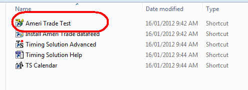 3) In Timing Solution folder click "Ameri Trade Test" shortcut: