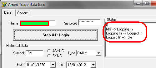 Step #1) type login information, i.e. Username and password and click "Step #1: Login" button. If this information is correct in "Status" panels you should get this: