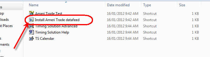 2) After installation in Timing Solution folder you will find this shortcut "Install AmeriTrade datafeed":