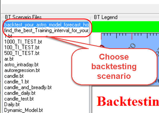 In the left panel you should choose one of the suggested backtesting scenarios. We provide two backtesting scenarios: