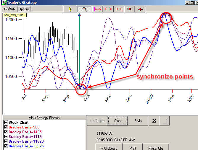 I would like you to pay attention to "synchronic" points when all projection lines indicate the same turning points.