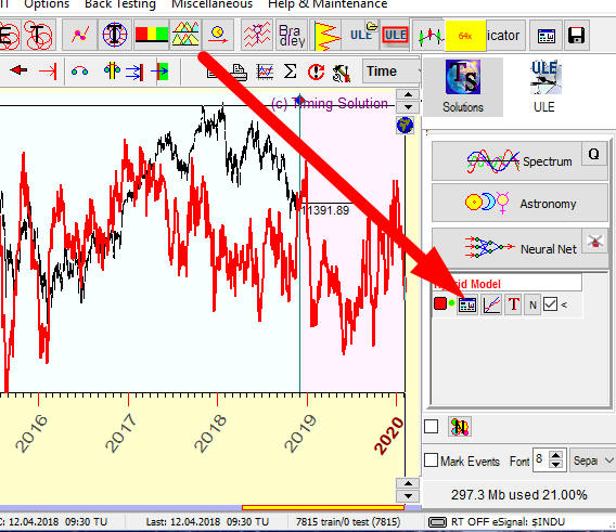 Then click OK to train this new NN model. This model will be applied to create Dow projection line.
