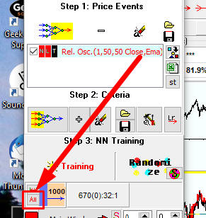 b) This is optional. You can try to use ALL available DAX price to train your NN. In order to do that, click this "All" button BEFORE training the NN: