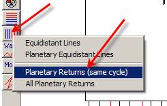 When you choose �Planetary Return (same cycle)� item, you get this dialog box: