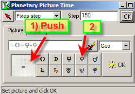 First of all define the planetary picture the Sun+Mercury-Venus. Click "the Sun" button: