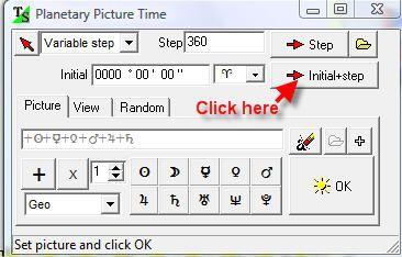 Example #1: We want to display the moments when Sun+Mercury+Venus+Mars+Jupiter+Saturn picture ingresses the first degree of Aries.