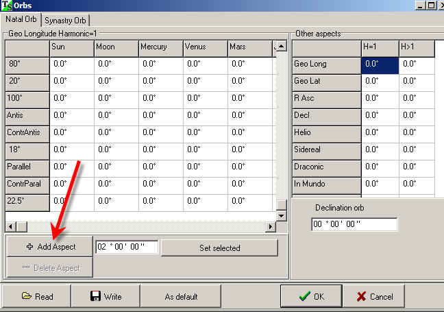 If you plan to work with this aspect later click "As Default" button. The program will download the list of customized aspects when you run it next time:
