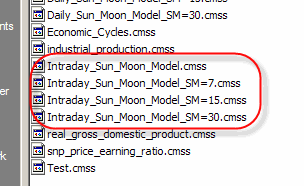 The second model Intraday_Sun_Moon_Model_SM=7.cmss uses 7 cycles to calculate the projection line, etc.