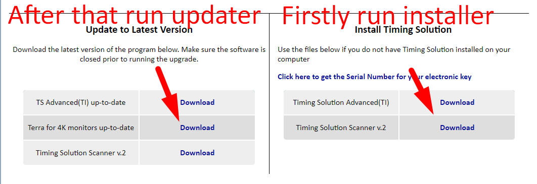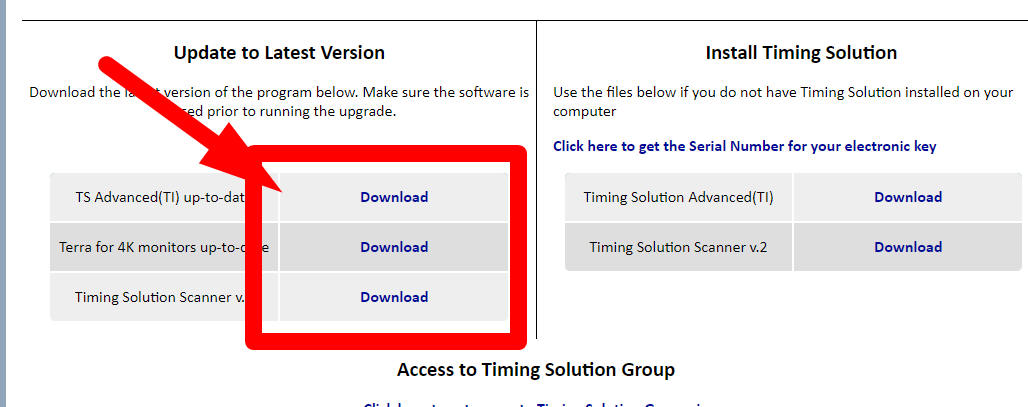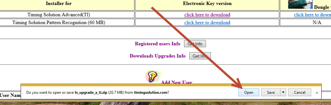 1) Check that Timing Solution software is closed while you are downloading the upgrade.