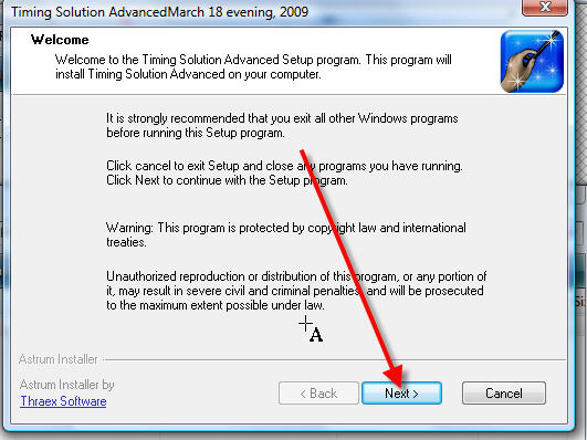 Step #7 Now click "Next" button to start the installation of Timing Solution software on your computer: