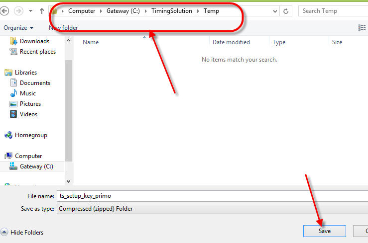 - choose any folder there, you can choose c:\TimingSolution\Temp folder and click "Save" button: