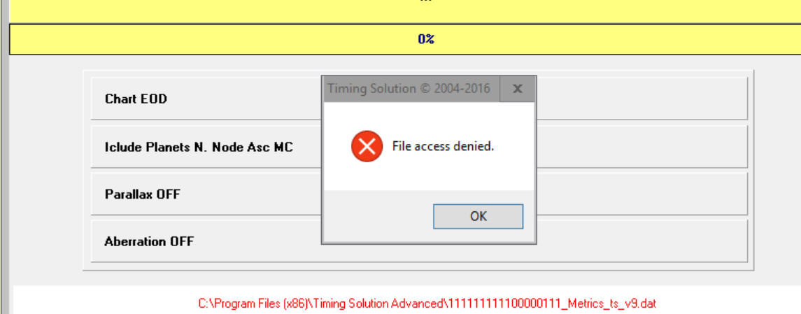 In order to solve this issue, you have to run Timing Solution as an administrator (right mouse button) and chose this: