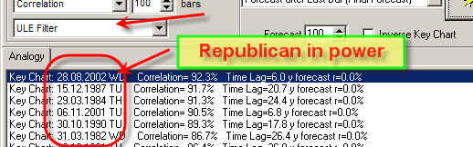 Let me show how it works. As an example, we will look for similar price charts not for the whole available price history, but only for those periods when Republicans have been in power in USA (this is one of the options of ULE module).