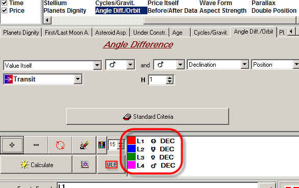Look at the screenshot below. Here you can see four ULE terms created: L1 - Sun declination, L2 - Mercury declination, L3 - Venus declination, and L4 - Mars declination: