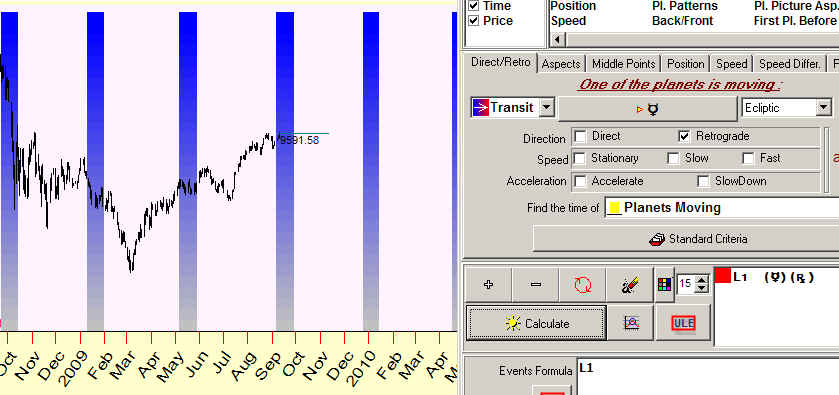 Lets consider one more example. Let us take some other event, not declination. See the periods of retrograde Mercury: