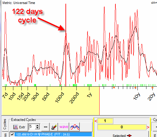 The spectral analysis provided by Timing Solution software indicates the existence of 122 days cycle:
