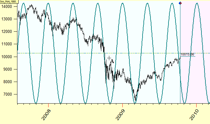 Next step of our analysis is finding historical analogies, i.e. finding the periods in DJIA history when this 122 days cycle has been as strong as now.