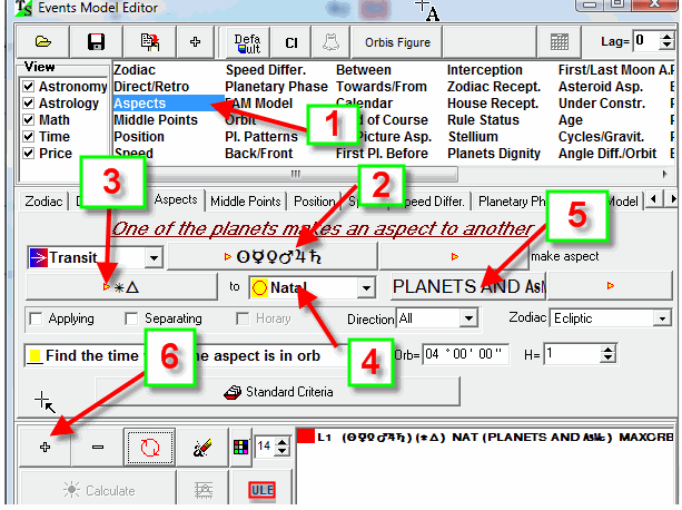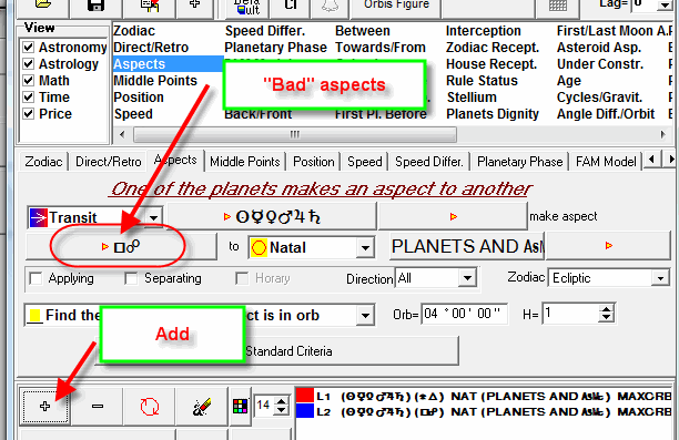 This is actually two conditions, not one. You have seen already how to create the first condition ("good" aspects). You need to create here one more event (L2) - "bad" aspects. Do it this way: