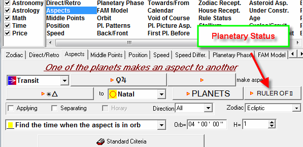 In this case the program will analyze NOT ALL Natal planets, but the planets that fit our criteria i.e. only Natal planets that rule the second house of each Natal Chart.