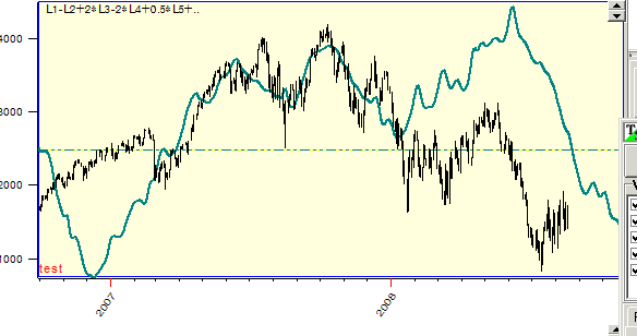 You see this indicator looks much more interesting: there are moments when the Sun aspects several planets, and it makes this curve more irregular: